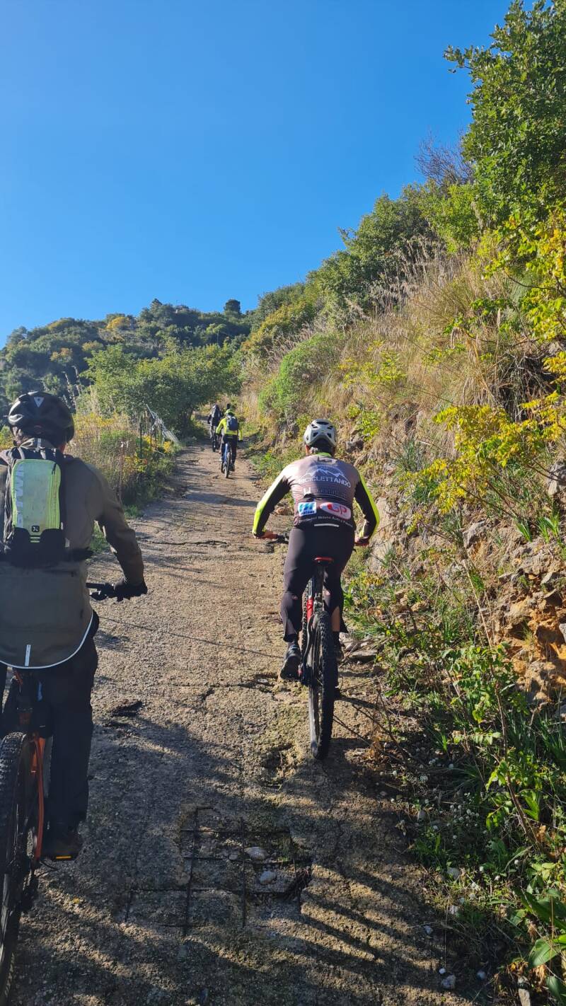 Durante il nostro percorso, non abbiamo potuto fare a meno di rimanere ammirati dalla sua incredibile abilità e agilità. Ciccio sembra letteralmente danzare sulle rocce, scegliendo con rapidità e precisione il percorso più adatto per le ruote della sua bici. Ciò accade anche mentre affronta salite che per noi, comuni mortali – specialmente noi in sella alle nostre e-bike che ansimando tentiamo di di stargli dietro – sembrano insormontabili.